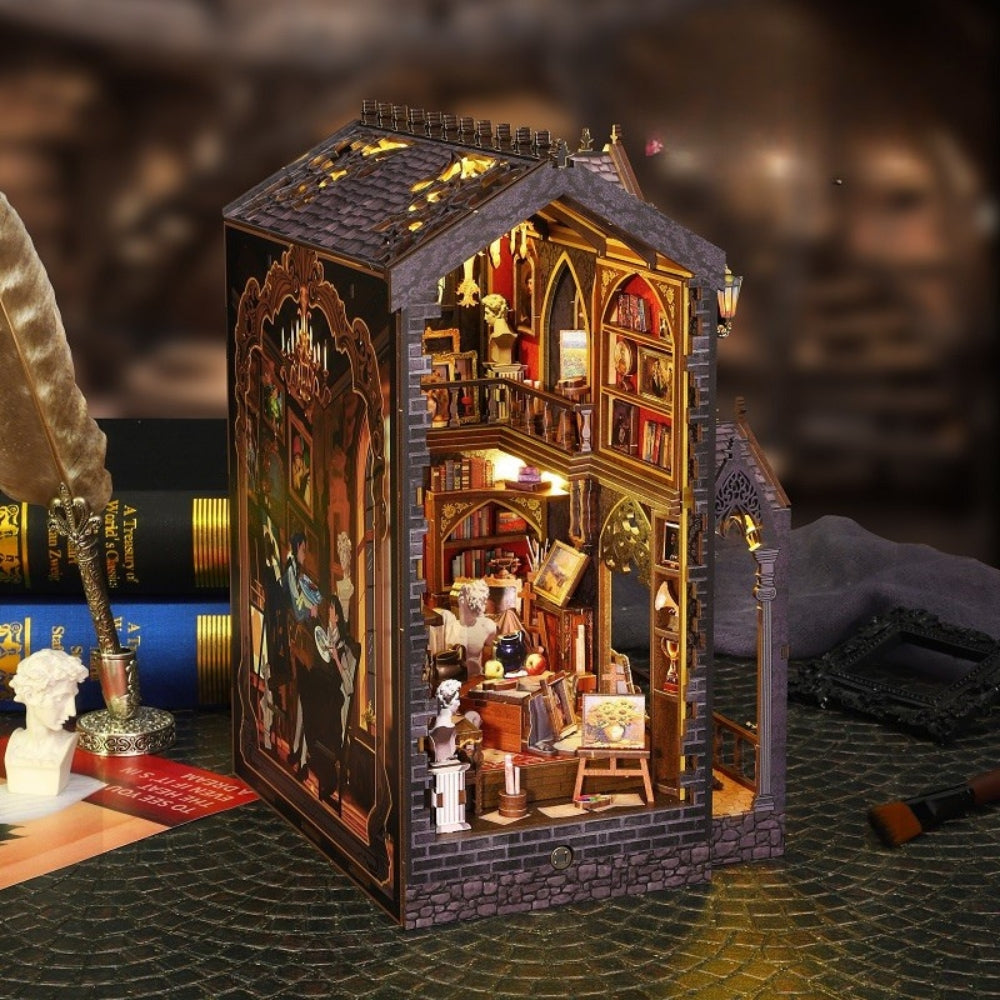Enter a miniature atelier filled with old-world charm and artistic wonder. With glowing lanterns, sculpted masterpieces, and Gothic arches, the Wonder Studio DIY Book Nook Kit captures the quiet elegance of a timeless creative sanctuary.