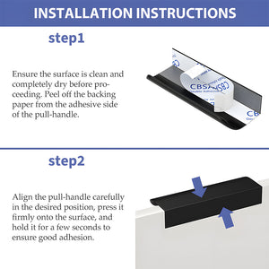 - This edge handle can be installed with adhesive. We will deliver the corresponding 3M double-sided adhesive together with the package. Simply stick the adhesive on the back of the edge handle and then stick it to the corresponding position of the drawer.