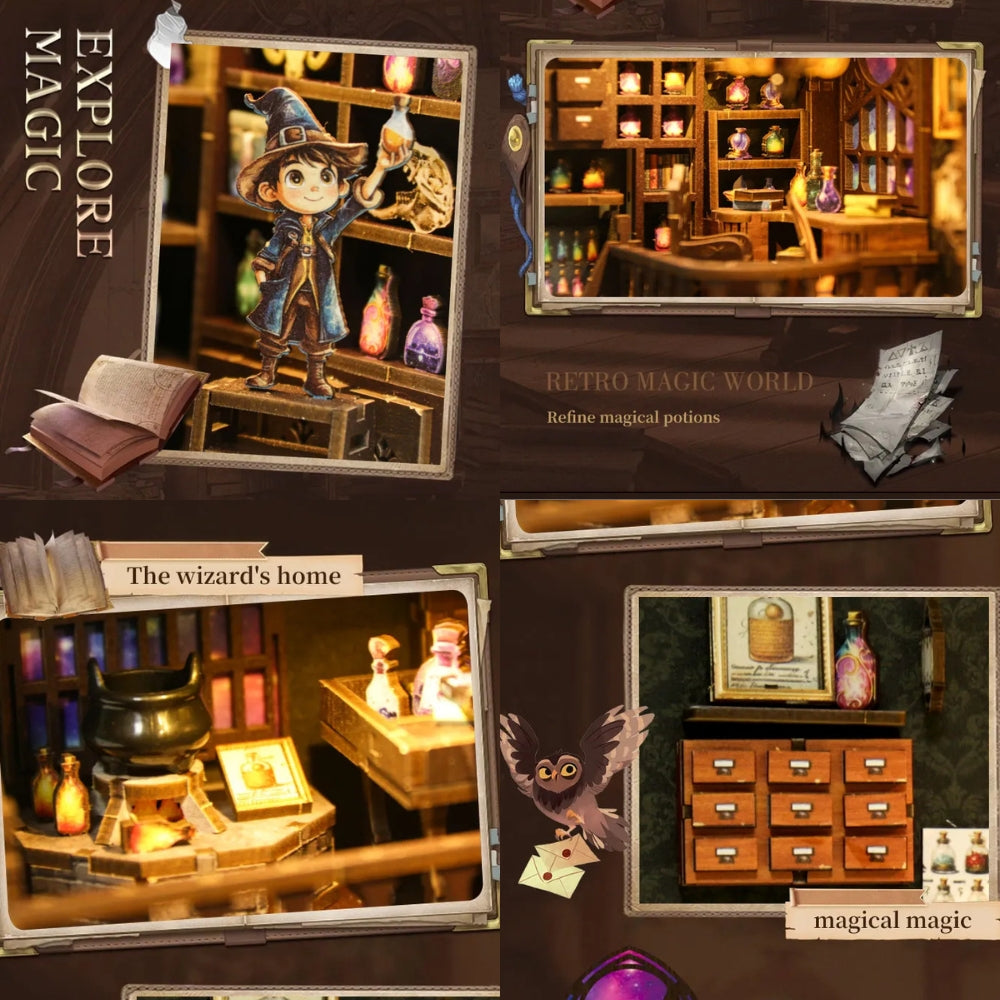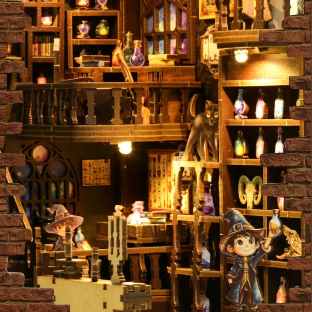 Step into the enchanting workshop of Potion Master Leon with the Alchemy Master DIY Book Nook Kit—a magical miniature filled with glowing potions, ancient herbs, and arcane secrets. Nestled inside a charming stone house and bathed in warm ambient light, this spellbinding scene brings a touch of wonder and whimsy to any shelf or display.