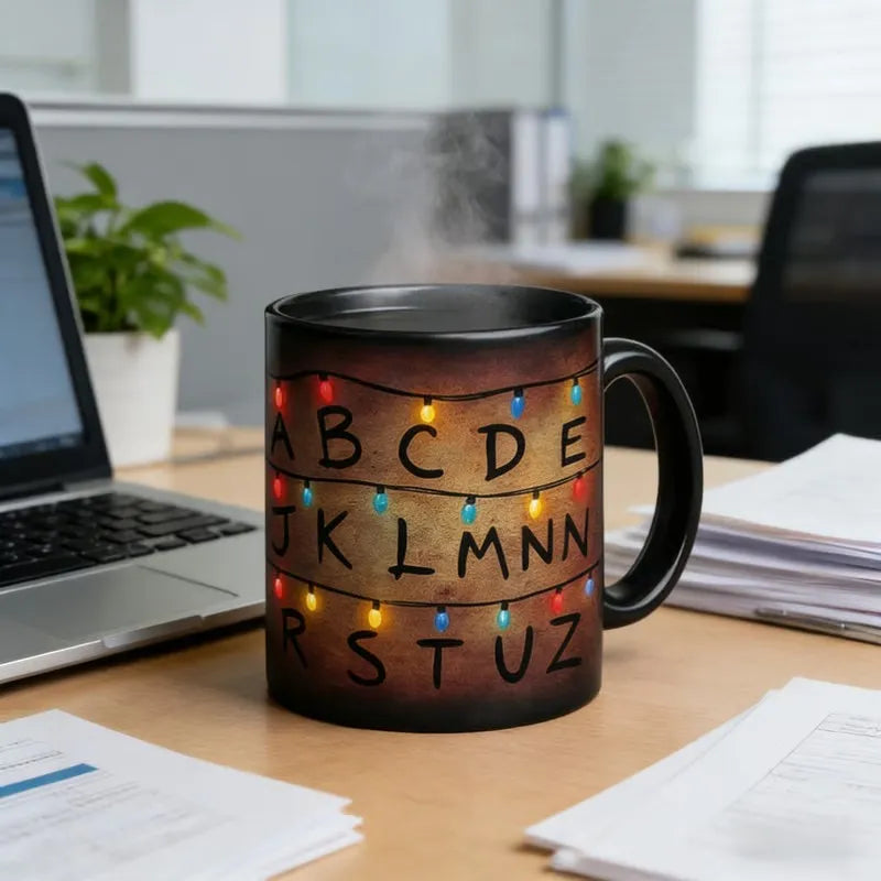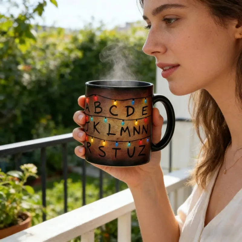 Thermo-Reactive Reveal: When hot liquid is poured in (around 40°C / 104°F), hidden colors and mysterious details slowly emerge across the mug’s surface. As it cools, the artwork gently fades back, ready to transform again.