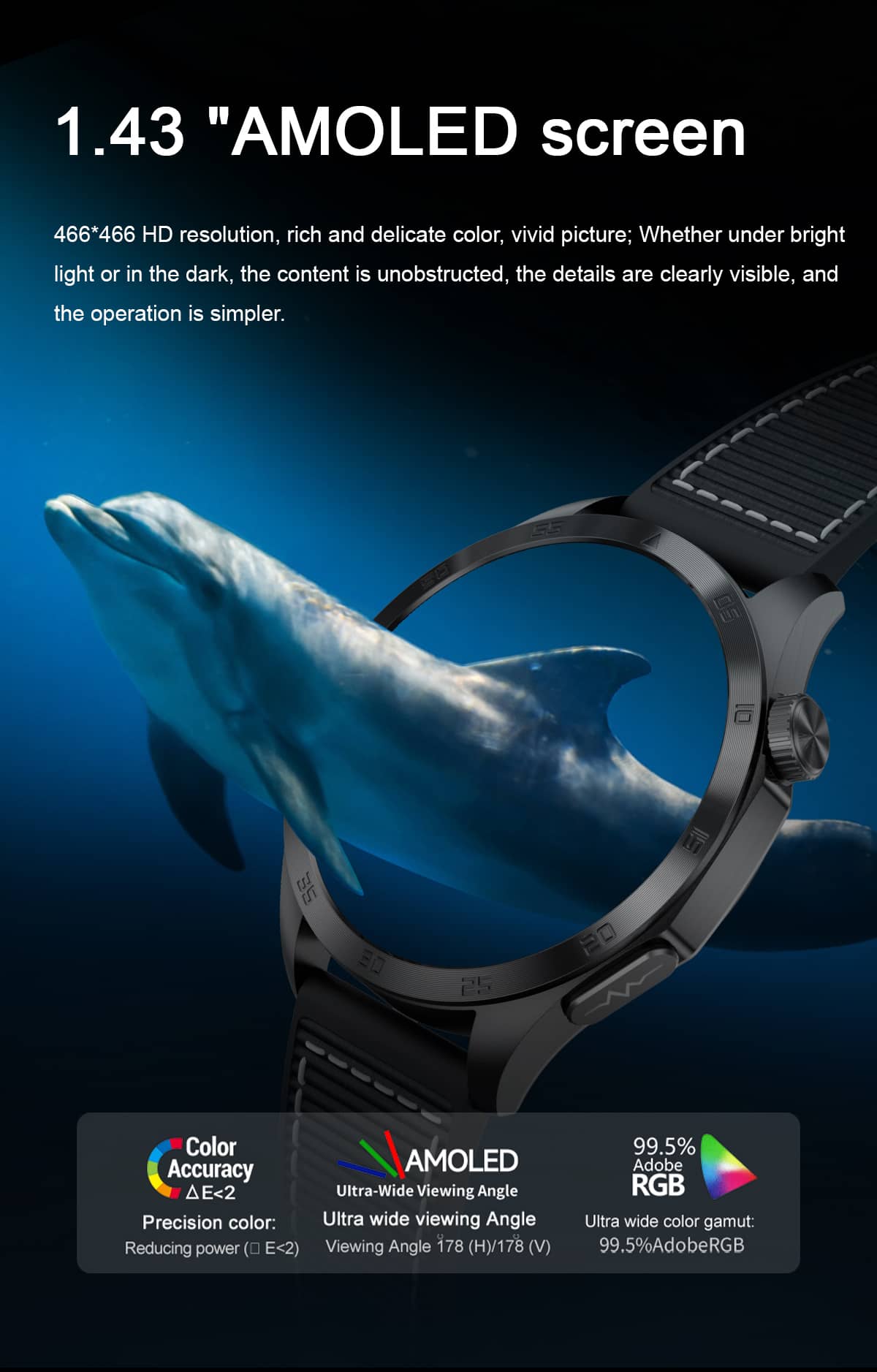 you covered.AMOLED display screen,1.43"HD screen,Bluetooth voice call