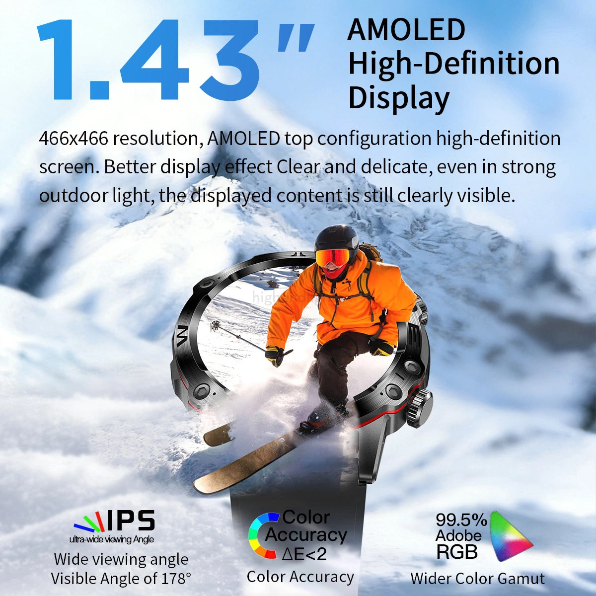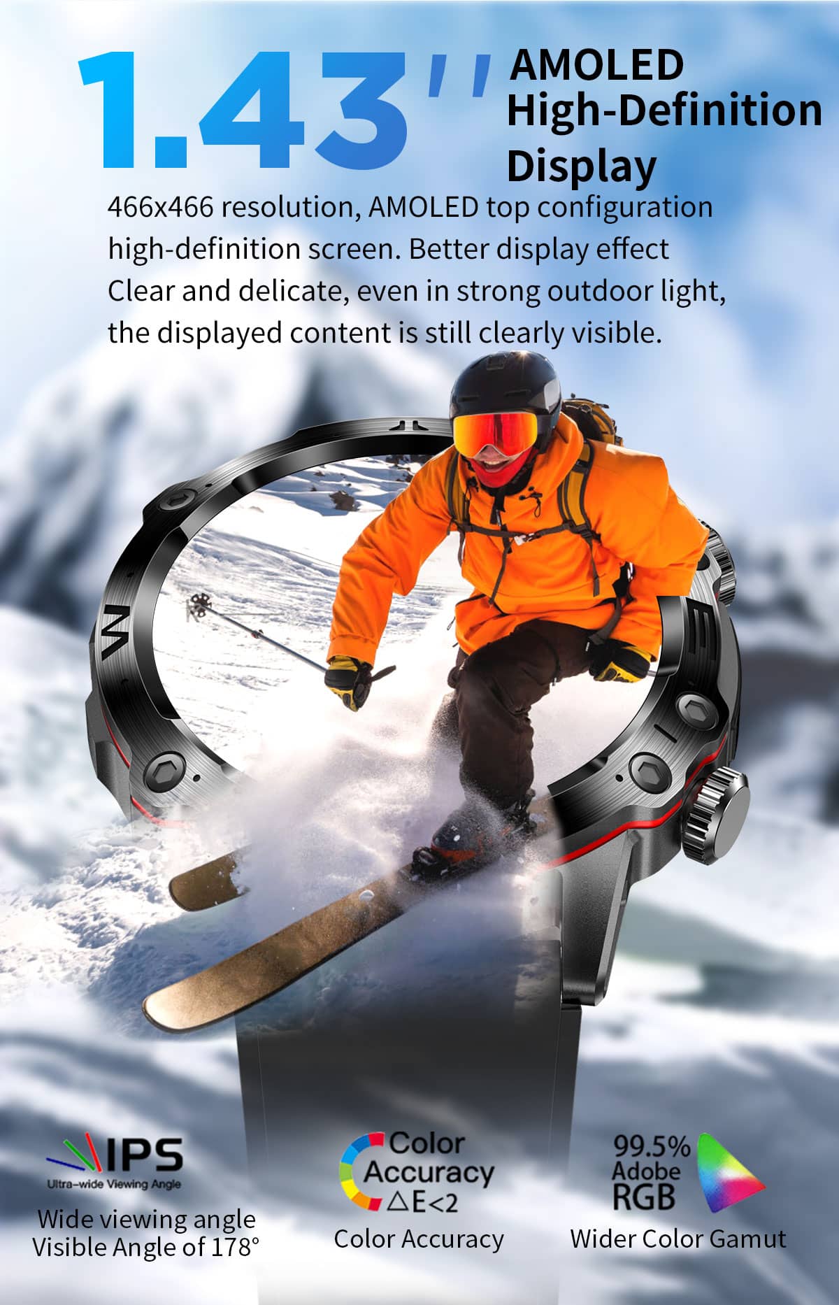 📱 Syncs seamlessly with both IOS and Android - no matter what phone you use, we got you covered,1.43 inch high-definition touch screen, One-click link Bluetooth call,IP68 Waterproof.