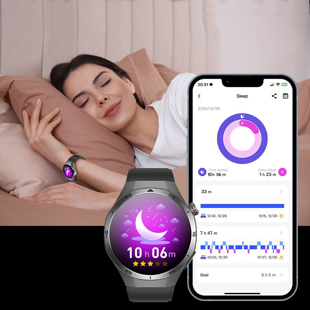 Overnight Oxygen Saturation Infrared and Red Light sensors track your blood oxygen levels, especially during sleep. Syncs data to your phone to maintain a daily record of your breathing patterns and overall health status.